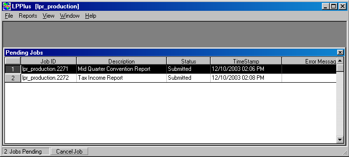 The status of background jobs can be checked and pending jobs can be cancelled. |